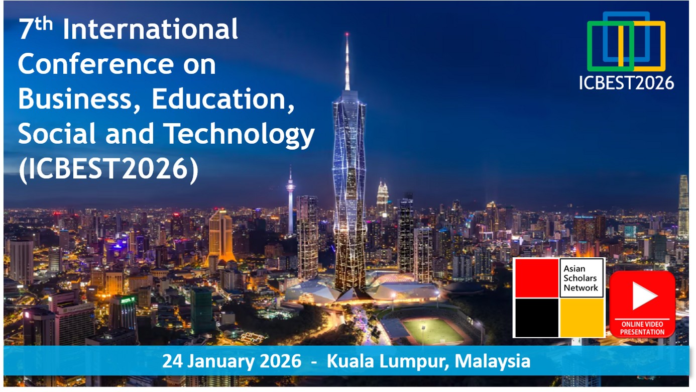 Asian Scholars Network (ASNet) will be organizing the 7th International Conference on Business, Education, Social and Technology 2026 (ICBEST2026) in Kuala Lumpur, Malaysia. The objective of the multidisciplinary conference is to gather leading academicians, scholars and researchers to share their knowledge and new ideas as well as to discuss current development in their respective fields. In addition, the conference also offers opportunities for academicians and industry experts to meet and interact with local and international participants.